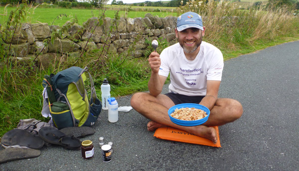 Aleks has covered 500 miles in 3 weeks compared to my 200 miles in 2 weeks. He was also travelling very light and of course, barefoot.